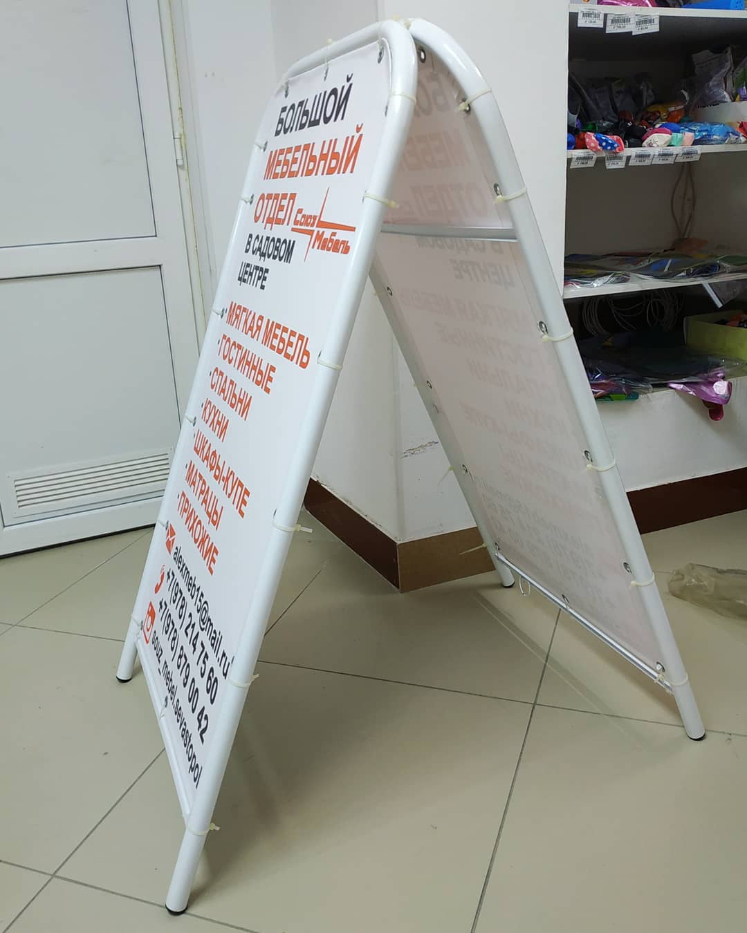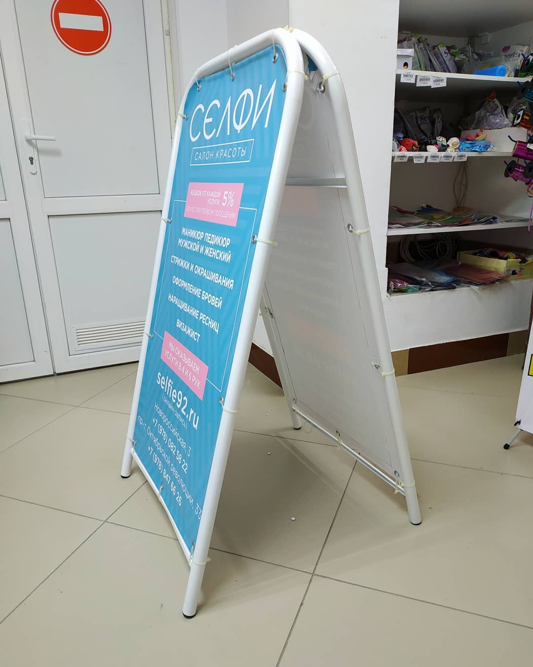 «Промосервис+» в Севастополе производит уличные и интерьерные штендеры и стойки. Яркие рекламные конструкции устанавливаются возле магазинов, внутри торговых центров и других общественных мест, привлекая внимание клиентов.